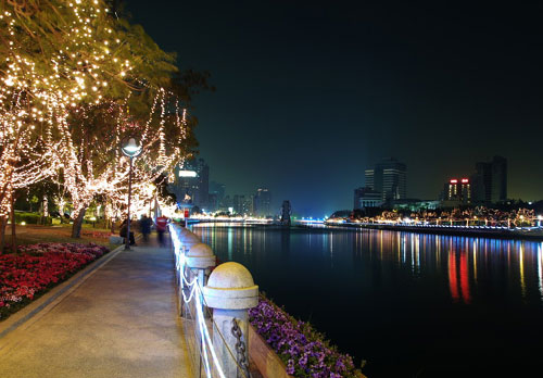 众所周知,目前大陆游客赴台旅游,通常会环岛游上一周,而林尚志理理事长表示,其实高雄市拥有吸引大陆朋友停留两天、尽兴游玩的自信:爱河正逐步打造成为台湾的“塞纳河”,六合夜市被大陆“踩线团”评为全台第一,旗津岛可吃海鲜能戏水,西子湾日落不比阿里山日出差,佛光山闻名遐迩可参禅修心,18条专门开发的特色观光购物街也是应有尽有……“还有很重要的一点,” 林尚志说,“高雄市人民憨厚直爽,热情好客。”