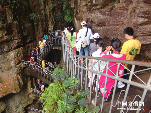 昨天,台湾中小学校长交流团赴张家界游览考察自然景观,先后游览了地下迷宫黄龙洞、宝峰湖、天子山。
