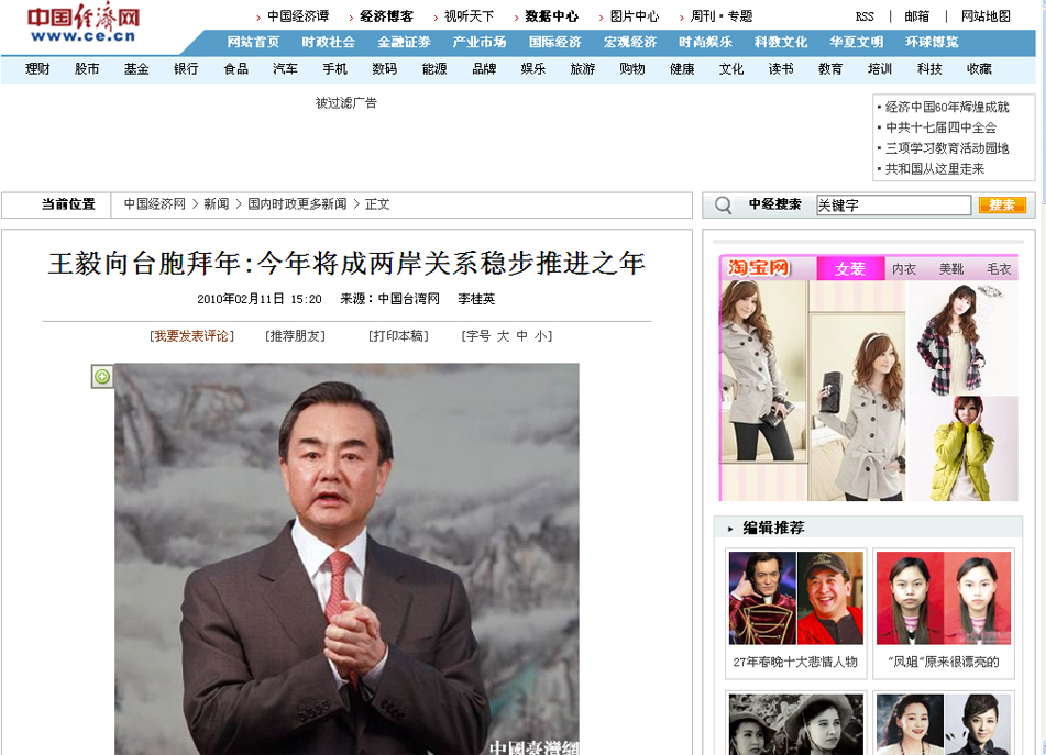 在虎年春节来临之际,中共中央台办、国务院台办主任王毅于2月11日,通过中国台湾网,向台湾同胞拜年,祝福台湾同胞新春愉快,万事如意。以下为王毅主任拜年贺辞全文: