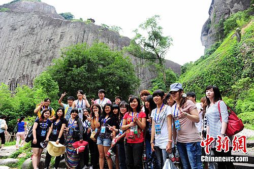 7月16日,海峡西岸2011年台胞青年夏令营暨全国台联台胞青年千人夏令营福建分营探访“世界文化与自然双遗产” 福建武夷山。中新社发 张丽君 摄