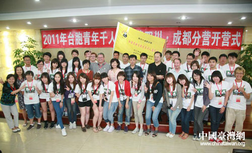 中国台湾网7月15日成都消息 7月14日下午,由四川省台联和成都市台联联合举办的全国台联2011年台胞青年千人夏令营四川·成都分营——“熊猫故乡更美丽”活动在成都开营。32名来自台湾大学、淡江大学、清华大学、辅仁大学等高校的台湾大学生和10名成都高校志愿者、台籍大学生参加了开营式。省台联副会长、成都市台联会长王良华主持开营仪式。