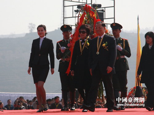 中国国民党荣誉主席连战及夫人代表台湾同胞敬献花篮。(摄影:董洁)