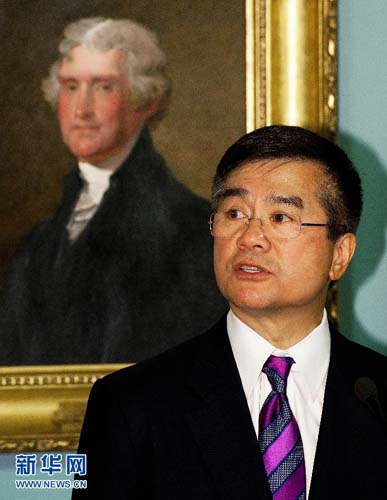 8月1日,在美国首都华盛顿,美国前商务部长骆家辉宣誓就任美国驻华大使。美国总统奥巴马于2011年3月9日提名骆家辉为下一任驻中国大使。国会参议院7月27日通过对骆家辉提名确认。 新华社/法新