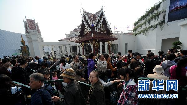 10月31日,游客排队等候进入泰国馆参观。