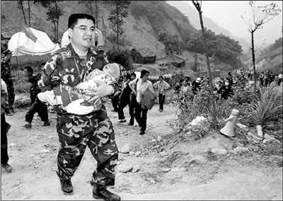 陈光标的救灾脚步一刻也没有停留。14日与15日在北川救灾,16日去了德阳、绵竹和东方汽轮机厂,17日就赶到了汶川的映秀镇……陈光标一面亲手救人,一面指挥工程机械疏导交通,他是救灾现场最繁忙的人之一!