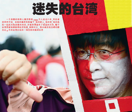 台湾民众做着“倒扁”手势,高喊“阿扁下台”。