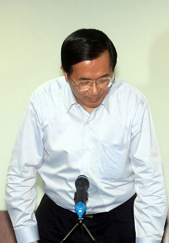 陈水扁在记者会上向民众道歉。