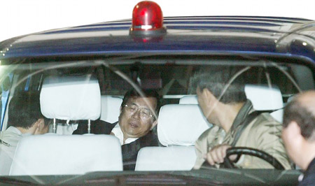 2008年11月12日,陈水扁被台北地方法院裁定羁押禁见,成为台湾首位被收押的卸任当局领导人。这是陈水扁被押往台北看守所时,在车内的情景。