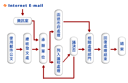 1. 由承办专员提供处理意见,经轮值议员同意后,报请议长处理。 2. 必要时召开协调会议,由轮值议员主持,并邀请市府官员及请愿人列席说明。 3. 重大案件或有关市政兴革事项须成议案者,应提报大会。 4. 仅属查询者,填具案件移送表送请有关单位处理。 服务电话:(06)2976688
