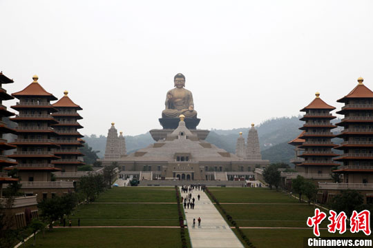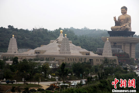 台湾佛光山佛陀纪念馆耗时10多年建成,将举办落成典礼及系列庆祝活动。图为佛陀纪念馆及108米高的世界最高坐佛像“佛光大佛”。中新社发 董会峰 摄