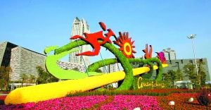 广州花城广场,鲜花扮靓迎亚运,抬头可见“蓝蓝的天上白云飘”