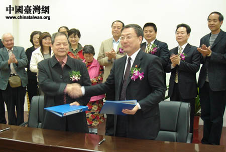 开幕式后,山东潍坊市第一中学和台北县南山中学的领导就校际交流签约
