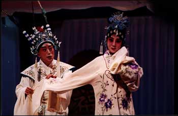 “新在就是主题上有一些变化,第一出戏《一捧雪》,在奴仆忠心的基础上,我们加上了一个对儿女后代,对儿女亲情的力量使他为主人舍掉自己的性命,意思更丰富了,离观众更近了;第二出戏《试妻大劈棺》就是在封建的男尊女卑的观念上有了转变,并非说庄周试妻就是有理,男女是平等的,我们也增加了一些新的艺术手法和处理;第三出《孙安进京》,我们增加了人性化的内容和大段的艺术手法,包括大段反簧、板式、唱腔等等我们都丰富了,我们保留了传统的好的东西,丰富了一些新的艺术手法。”