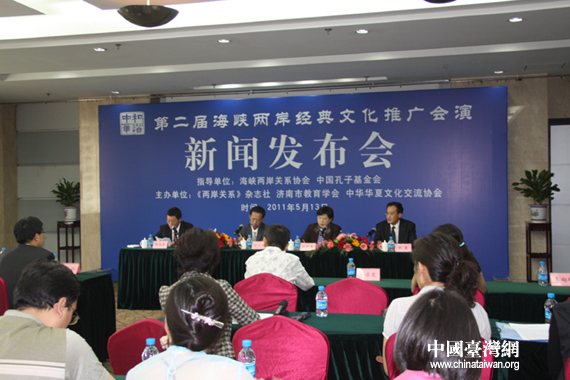 中国台湾网5月13日济南消息 以“万众共咏千古经典,两岸齐颂和谐中华”为主题的“和谐中华·第二届海峡两岸经典文化推广会演”今日在济南举行新闻发布会,主办方介绍了活动的组织安排情况与亮点,并宣布活动启动。