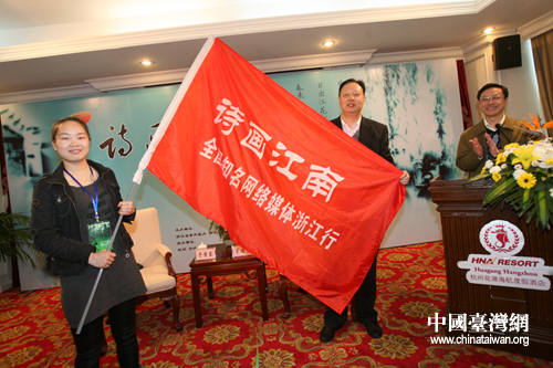 “诗画江南——全国知名网络媒体浙江行”授旗仪式 (中国台湾网 李典典 摄)